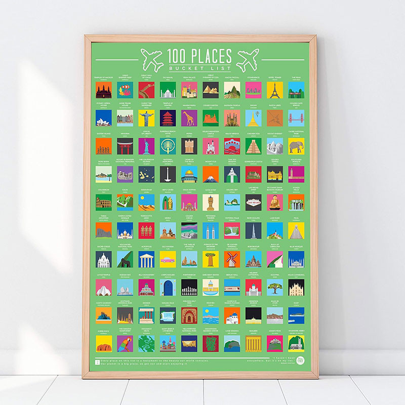 From the Galapagos islands to the statue of liberty, our world is filled with so many amazing places, so why not get out there and start exploring? Scratch each one off as you go along and hang this stunning poster on your wall for a lovely keepsake of all your travels!