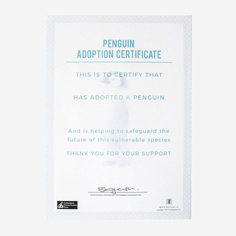 This adoption pack is in association with the Galapagos Conservation Trust, a registered charity which helps Galapagos Penguins by conserving their habitat. Your 12-month adoption will make a valuable contribution to the continuation of these beautiful animals, making it a thoughtful gift for any penguin enthusiast.