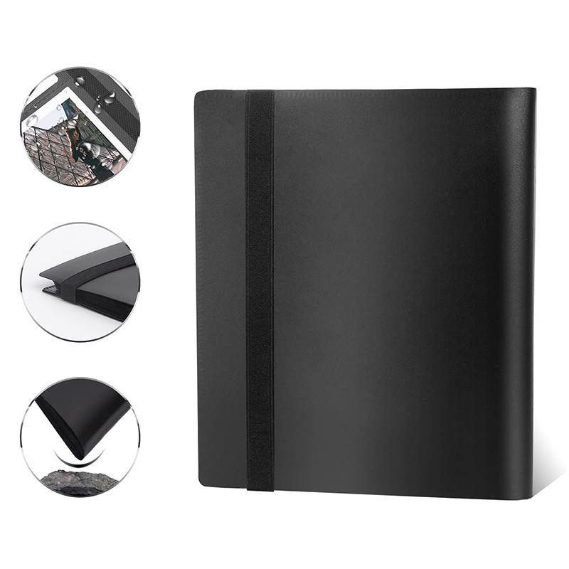 The album cover is crafted from sturdy yet flexible poly material, providing excellent durability and tear resistance. The side loading pocket design prevents cards from accidentally slipping out, while an elastic strap securely holds the album shut when not in use, effectively safeguarding your favorite photos.