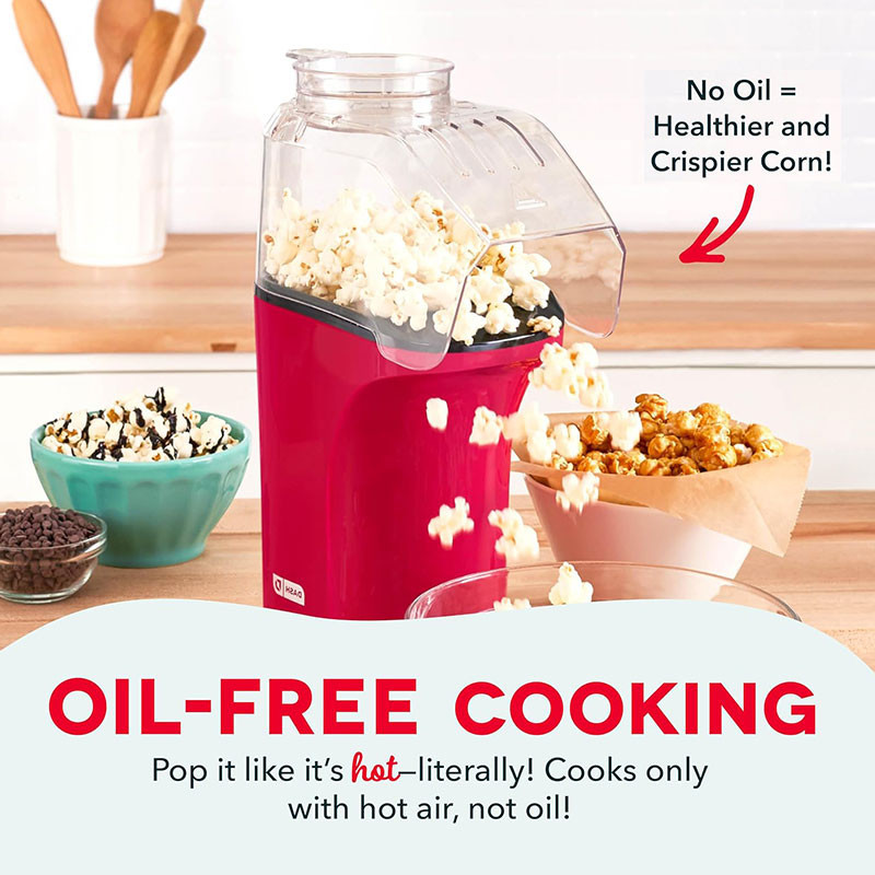 Comes with everything you need to start popping, including a recipe book for creative popcorn ideas. Make healthier, tastier snacks in no time with the Dash Hot Air Popcorn Popper Maker!
