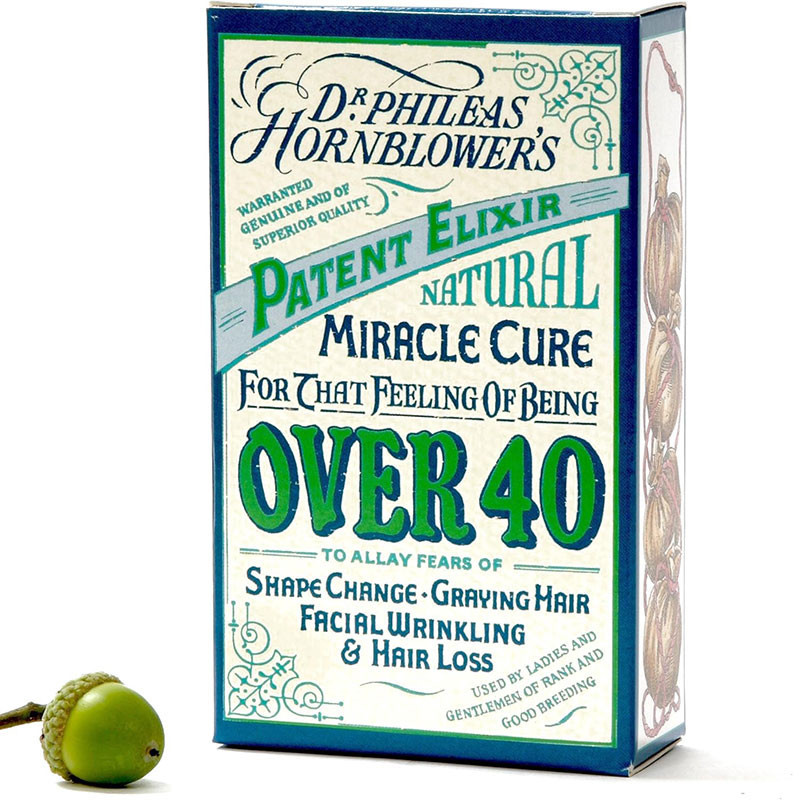 Dr. Phileas Hornblower's Miracle Cures for that Feeling of Being Over 40 make funny 40th Birthday gifts for men or women.