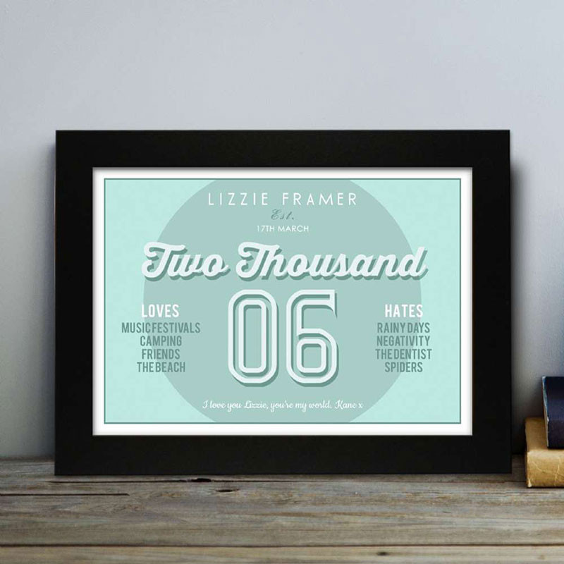 This Personalised 16th Birthday Poster is available in 2 sizes and a whopping 10 colour schemes, so there’s bound to be a colour to suit even the fussiest of teenage tastes! You can choose to buy print only, or to make your gift complete you could choose to have it framed!