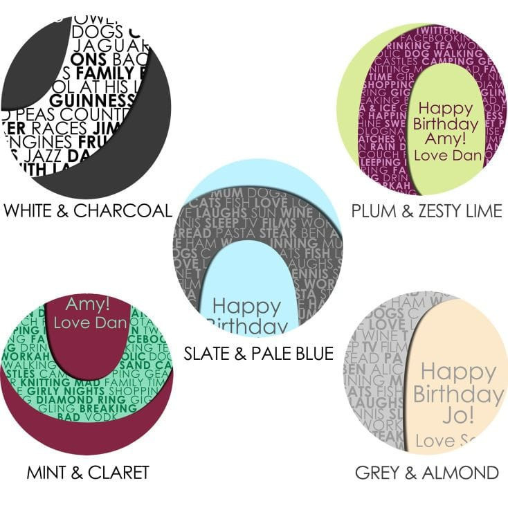 • Ideas for personalisations: Favourite music, films, television, food & drink, names, dates, holiday memories and other happy memories!