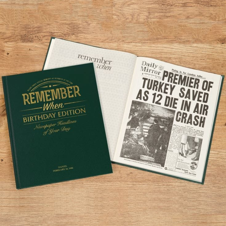 Bound in a stylish green leatherette cover with gold embossing, the personalised newspaper book contains news stories from all around the world from the very day that your recipient was born. Using the contents of the Daily Mirror from that day, it will recreate a moment in time that will fascinate and intrigue. Great for those big landmark birthdays, treat an older relative to one of these books and learn all about a period from the past along with them!