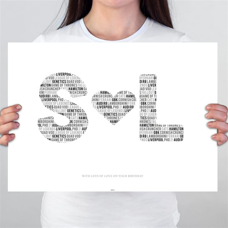 This fabulous personalised couples letter poster makes a unique gift for a loving couple. Select 2 letters which will be separated by a heart and these will then be filled with personalisation of your choosing.