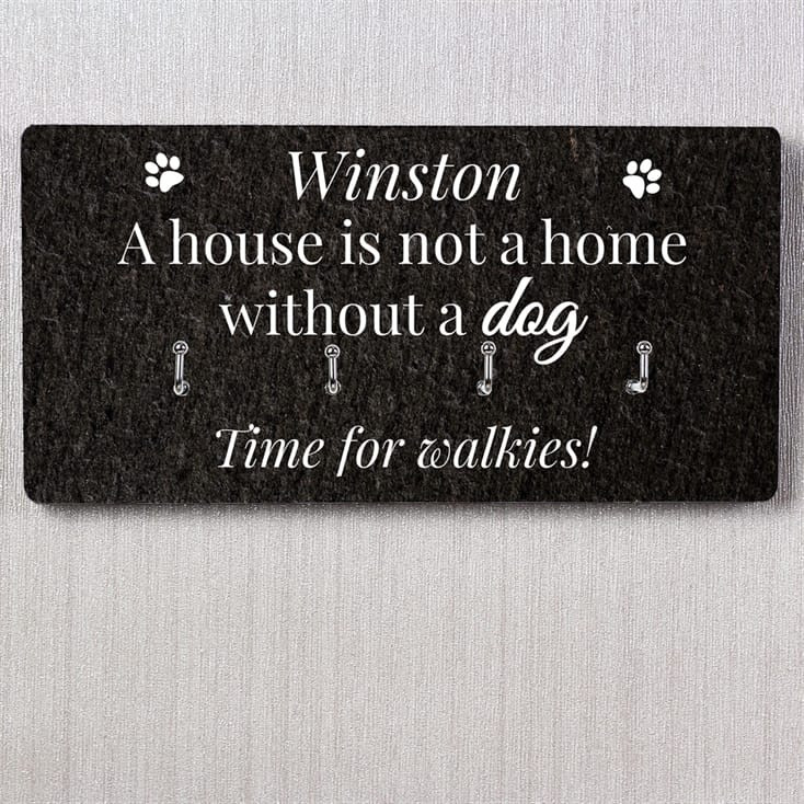 On the reverse of the hanger are two slots for easy hanging (screws and fixings aren't included) so you can hang it by the door or wherever is most convenient for you. Its charming design features paw prints and a message which reads: "A house is not a home without a dog". You can also personalise the wooden hanger with a name, up to 12 characters long and a message of your own choosing, up to 25 characters long.
