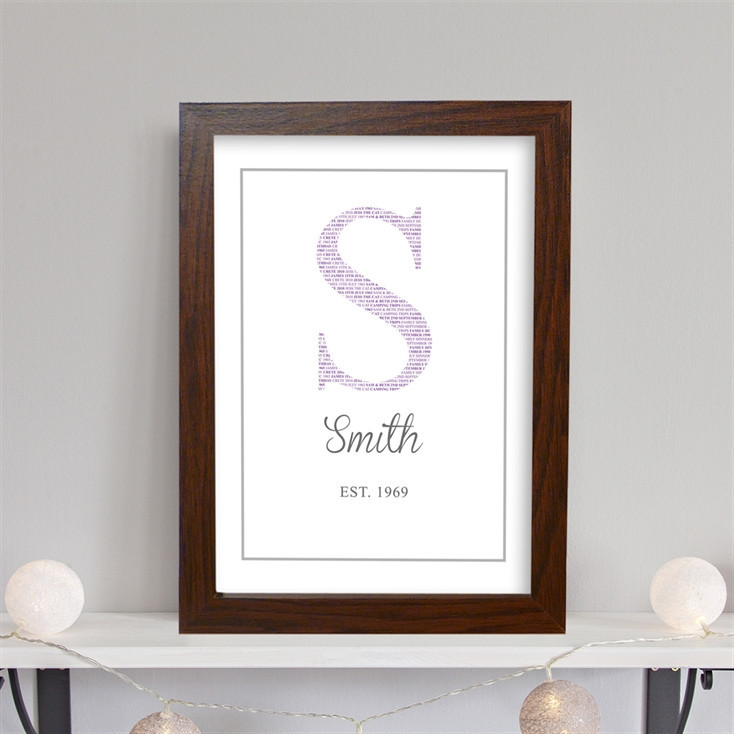 This stunning initial print can be given to a cherished family member, a family friend or a couple who has just tied the knot, securing a new chapter to the family name. Spend a little bit of time thinking about what makes your family unique, choosing the top ten things that makes them stand out from the crowd. Whether you treasure the smell of home after a long time away, adore the racket the younger generations make when they're all together in one room, or enjoy a peaceful Friday night surrounded by loved ones, it can all be beautifully presented on this personalised print for the entire family to enjoy. Choose the year your family began, whether you have to dig deep into the ancestry files to find the beginning of your lineage, or write the date your grandparents found love, adding that personal touch all the more.