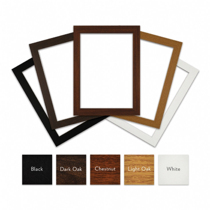 Print Only and Framed options (choice of Light Oak, Chestnut, Dark Oak, Black and White frame colours, with acrylic front, not glass)