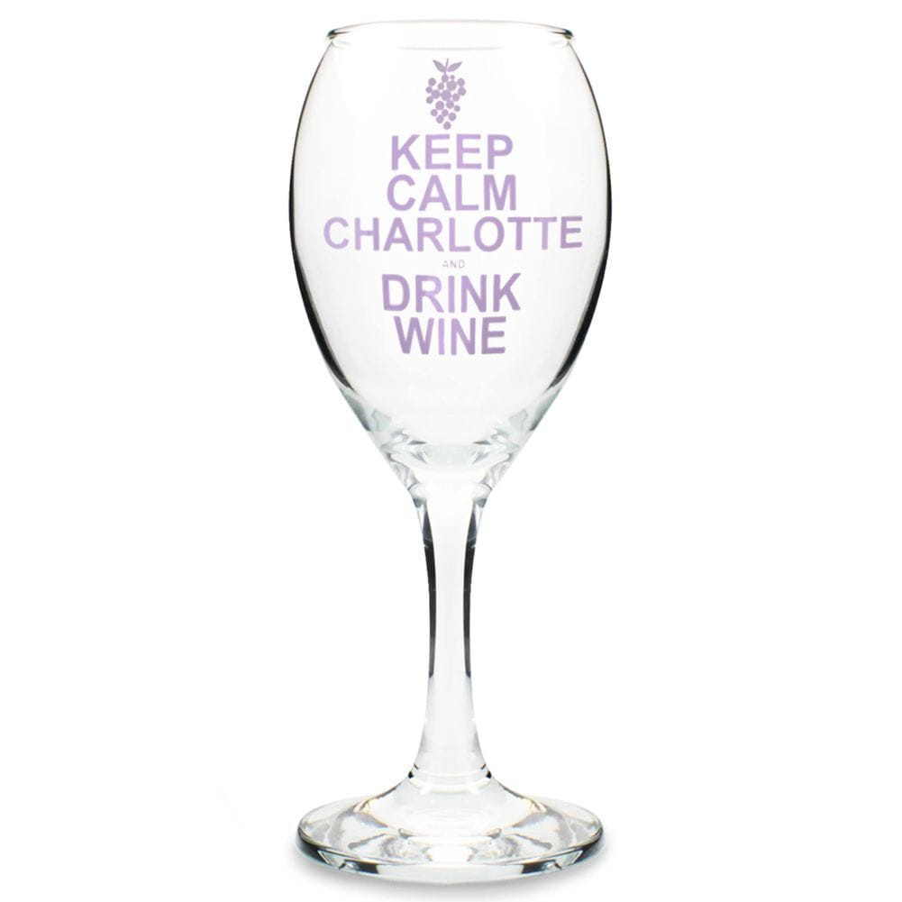 - Our Personalised Keep Calm Wine Glass can be customised with a name up to 12 characters long!