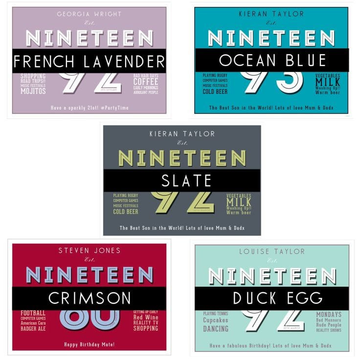 The year takes centre stage with the first two numbers being written in letters with the last two as digits. If you also enter a birthdate, then this will be positioned somewhere inside the last number. This poster makes a fabulously thoughtful birthday gift for any age and a wonderful keepsake which they can look back on – it would make a fun talking point as to how their ‘Loves’ and pet ‘Hates’ change over the years too!