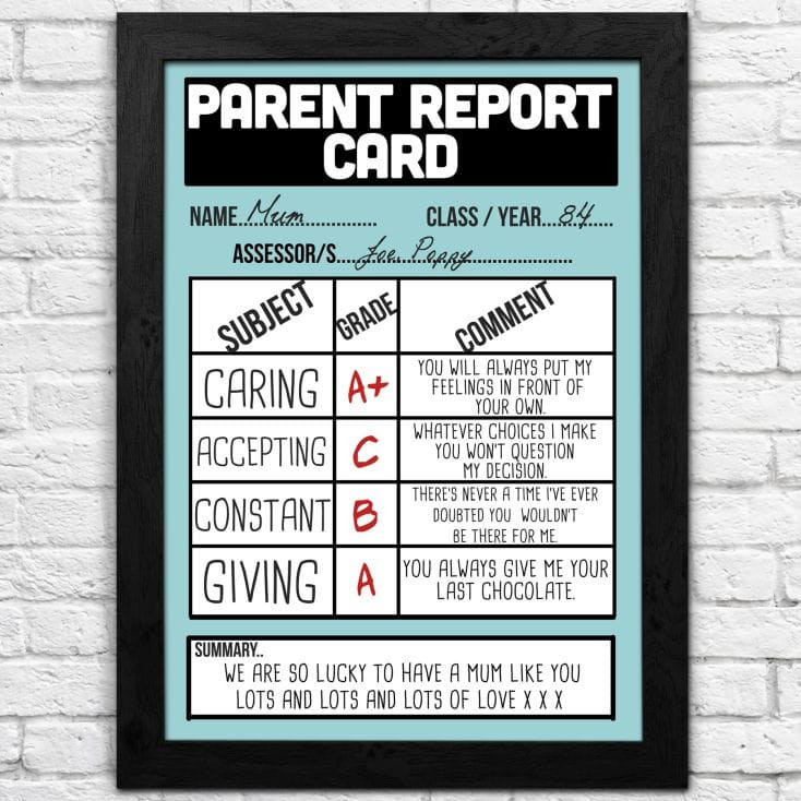 Now you can turn the tables and grade your parents on how well they are doing in the university of life. Whether they have failed miserably in cooking, their time keeping is questionable or received an A+ in Boyfriend Trouble Counselling, you can make this personalised poster as funny or sentimental as you wish! What will you put on yours?