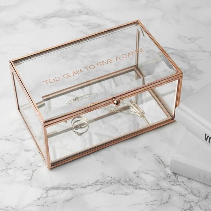 • 1 x Personalised Rose Gold Glass Jewellery Box