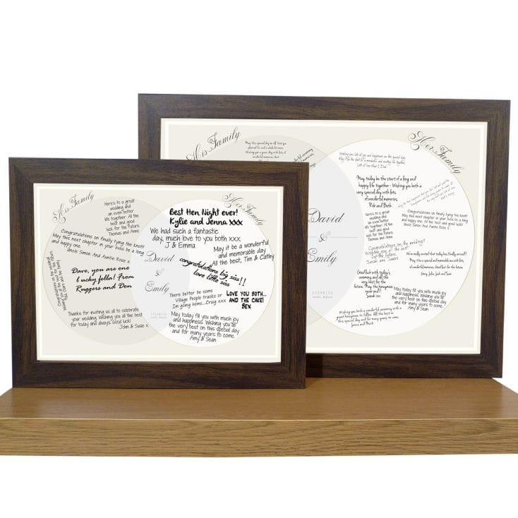 So if you are looking for a wedding guest book that will just get stuffed into a box or in a shelf, then why not get Find Me A Gift's Personalised Wedding Guest Venn Diagram Poster instead? It can be proudly displayed on your wall for everyone to see and read. What a perfect wedding gift and keepsak
