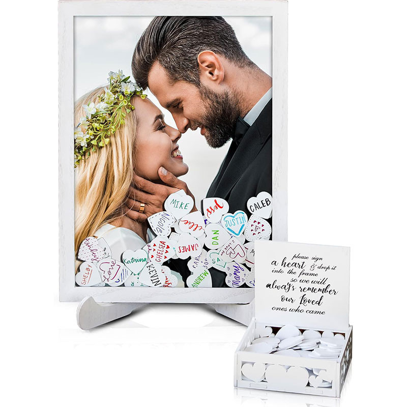 When the whirlwind of your wedding is over, one of the nice ways to look back on the day is to browse the guestbook. So why choose a traditional guestbook that gets tucked away in a cupboard and forgotten about from the wedding day onwards? This Wedding Heart Drop Box is a guest book that also makes a beautiful display for your wall.