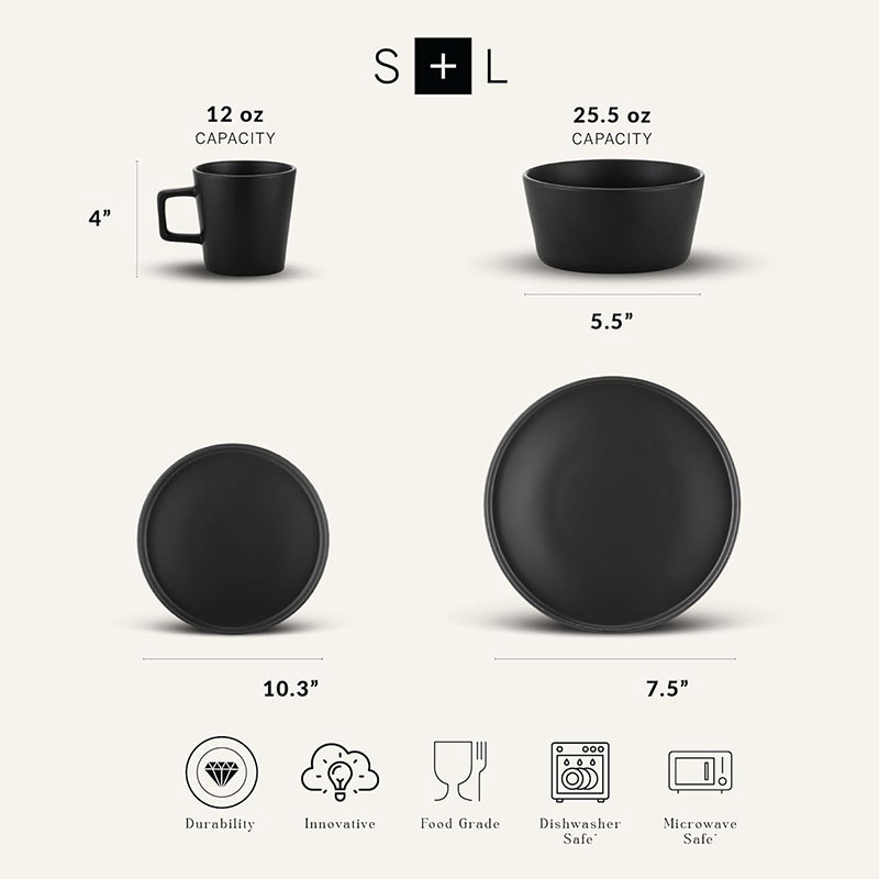 This 16-piece dinnerware set in sleek black matte is the perfect combination of style and functionality
