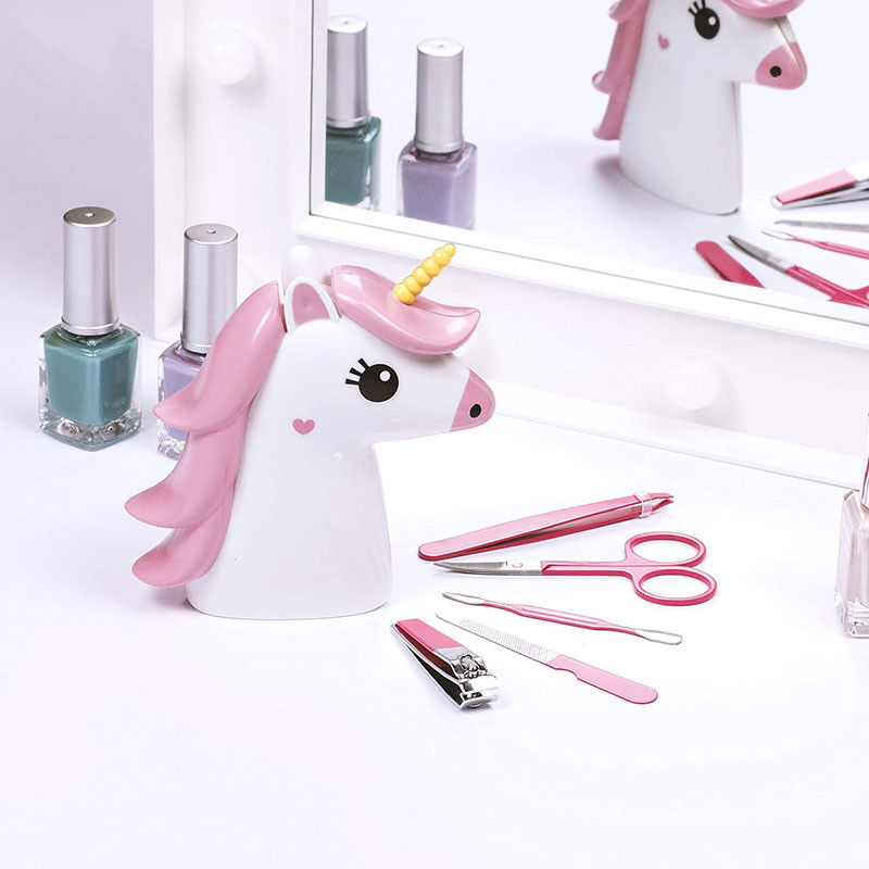 - 5 beauty tools stored in an adorable compact unicorn case